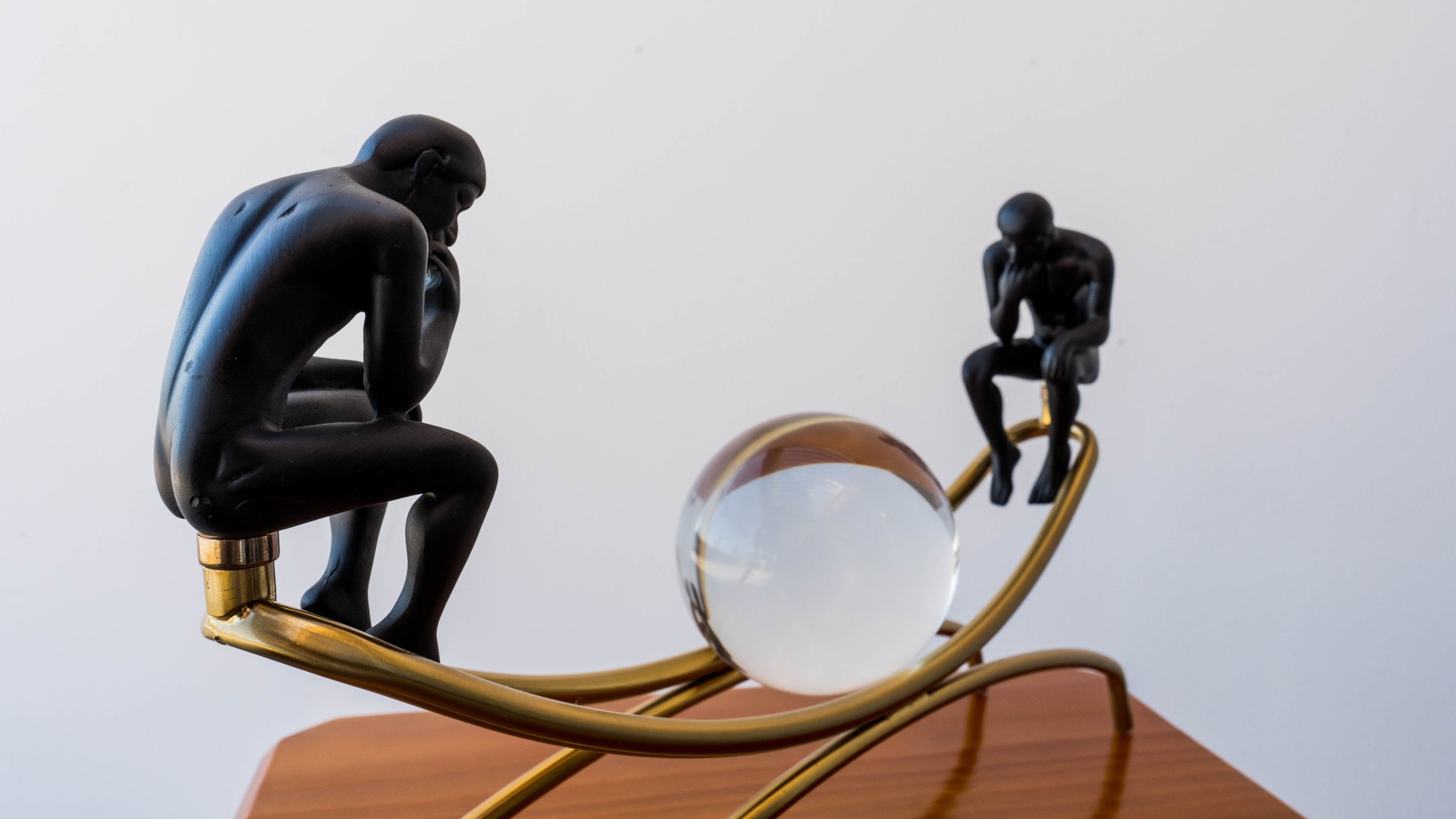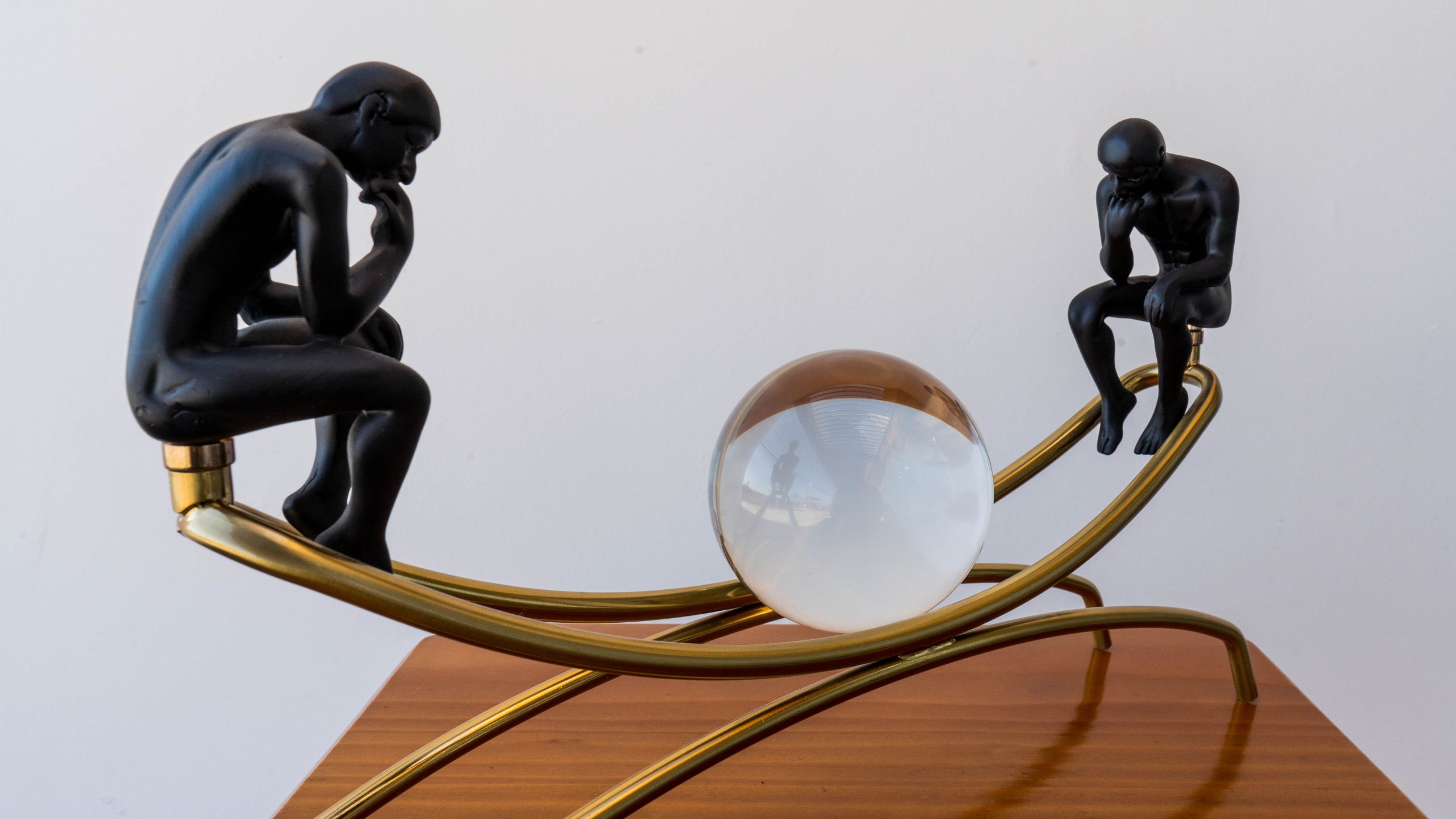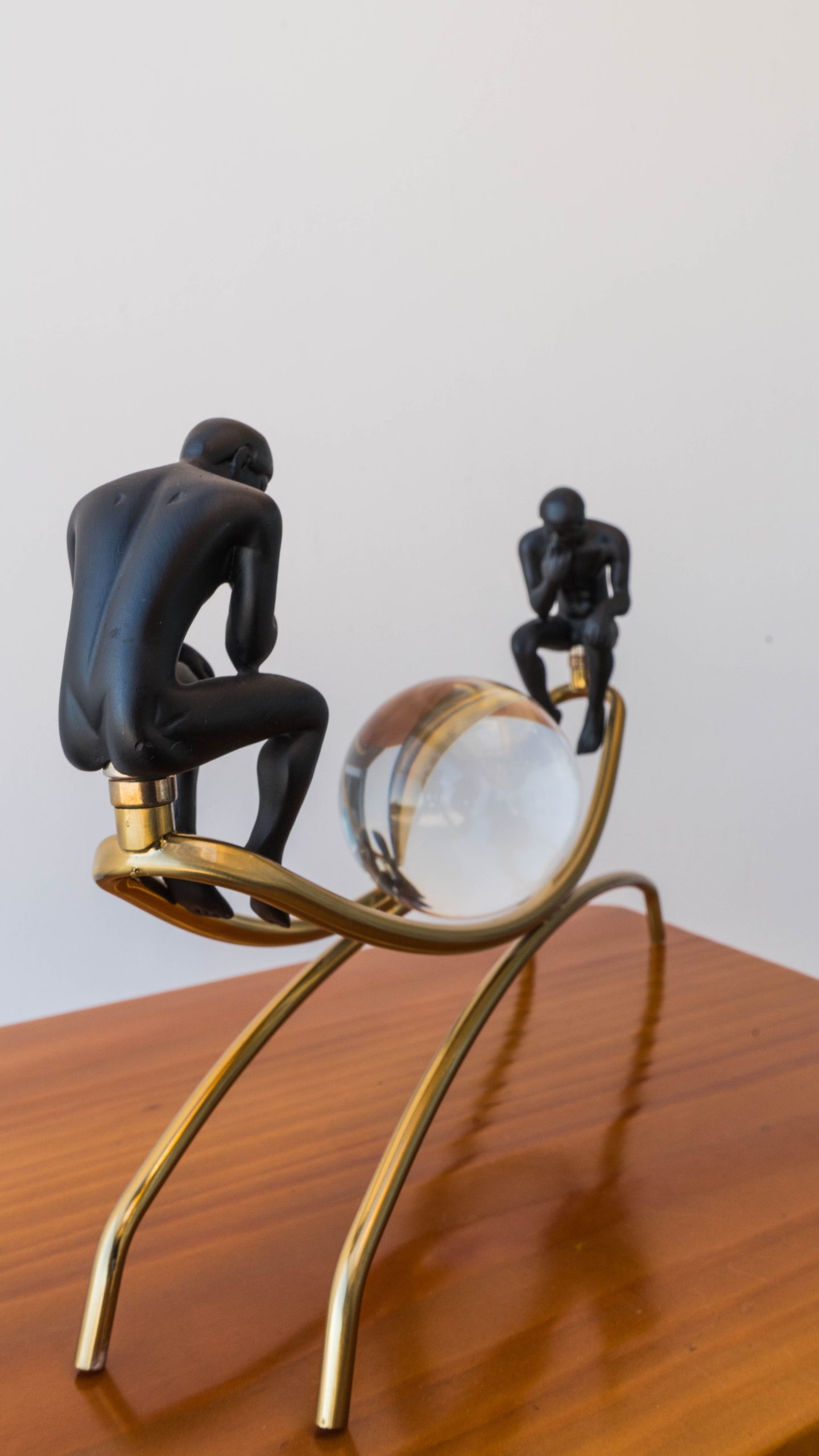 Color: figuras negras con base dorada y esfera de vidrio